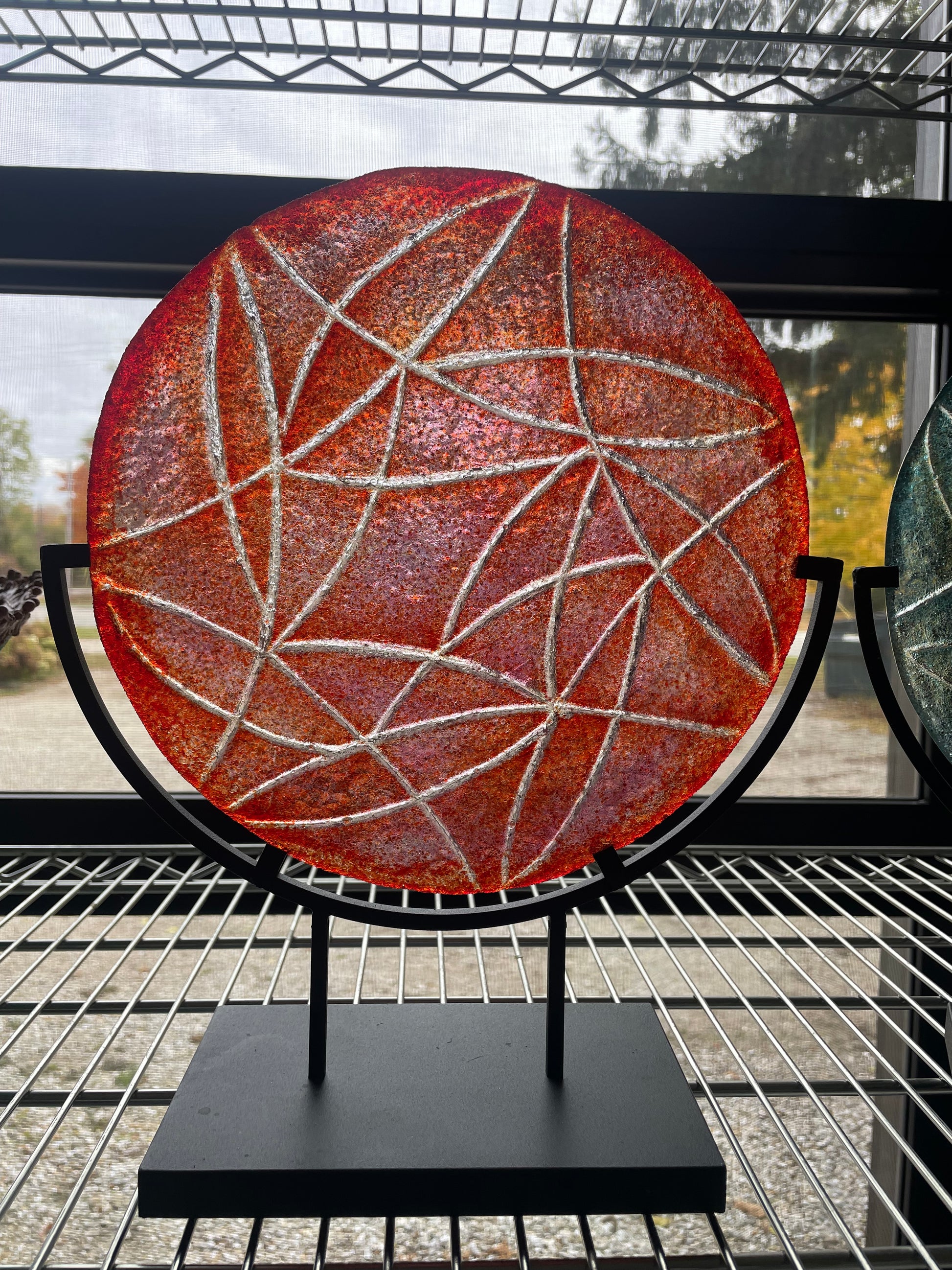 Create your own pate de verre disk from start to finish! No experience necessary. You will work with wax and or clay to create a unique design. We will then cast a mold of your design for casting the glass. Once the mold is set I will demonstrate the glass technique using glass frit. The class takes a full day starting at 10am and usually done by 4pm. The pieces fire in a kiln over 3 days and can be shipped for $15 if you will be leaving town before they are cool. The 8" stand is included in the price of the class